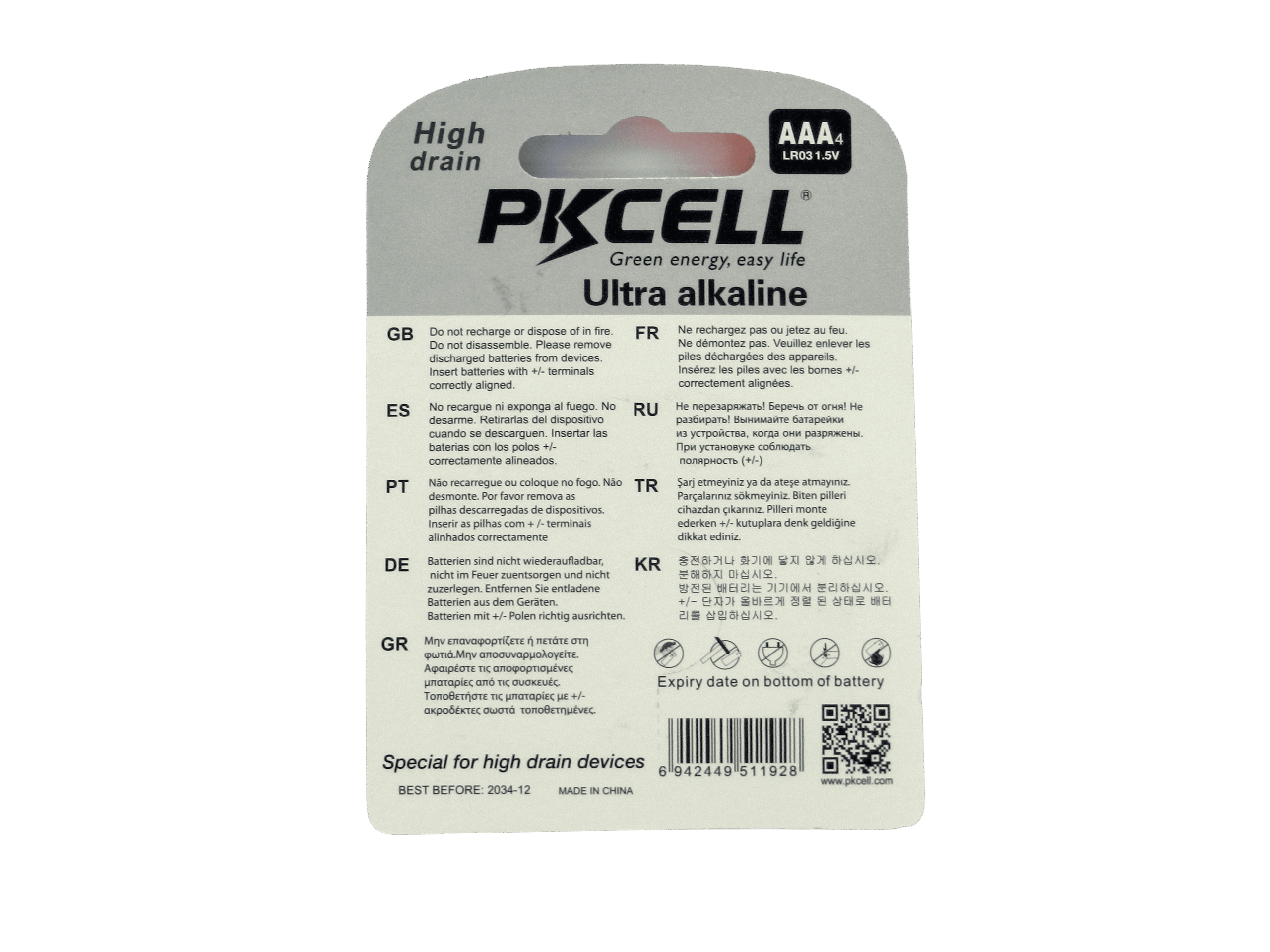 SKU LR03 Categories Accesorios, Alimentación, Baterias Tag B Batería, PKCELL, alcalina, AAA, 1.5V, blíster con 4pcs, LR03