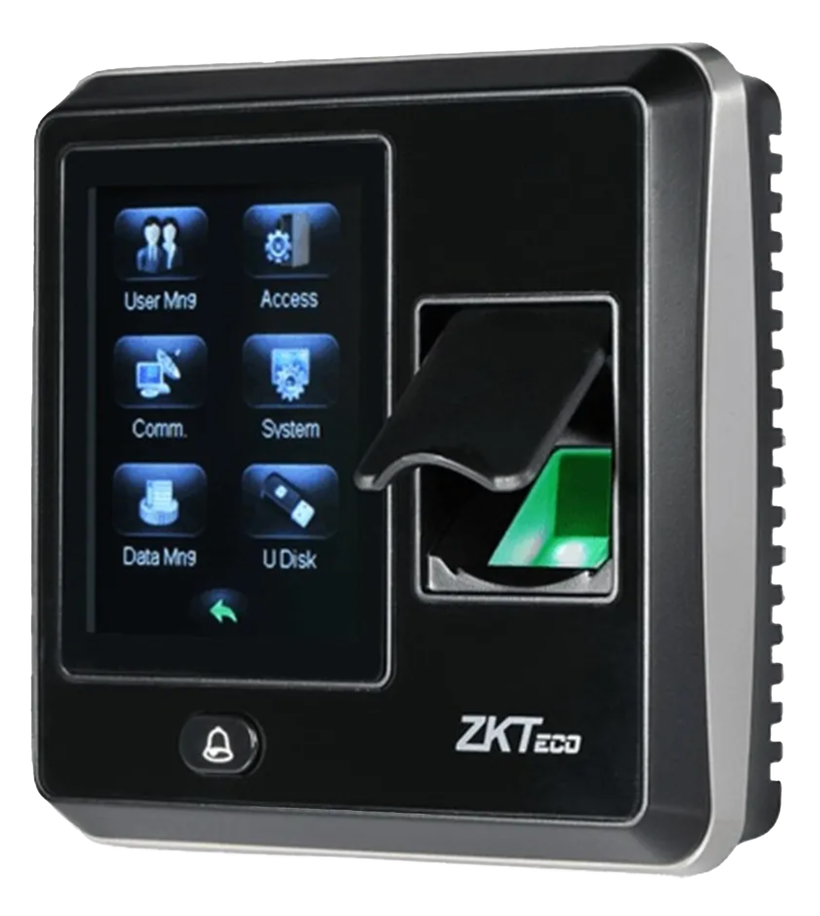 SKU MA500 Categories Biometrico, Control de acceso, Lectoras Tag A Terminal Biométrica de control de Acceso, IP65, Conexión de cerradura eléctrica, sensor de puerta, alarma y botón de salida. (ZKTeco)