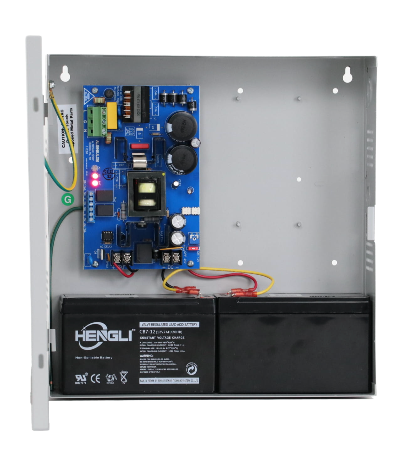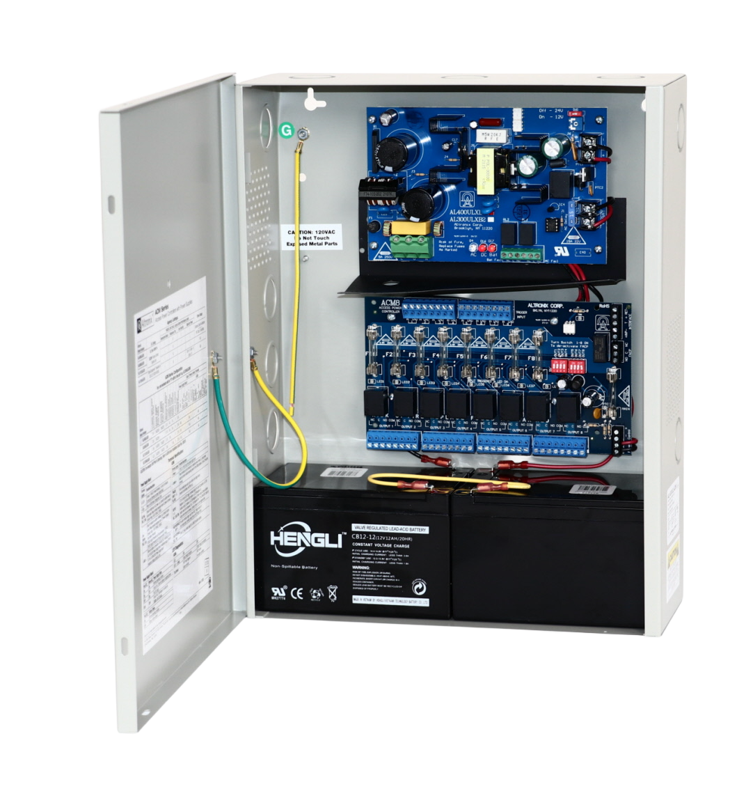SKU AL600ULX Category Alimentación Tag A Fuente de poder / cargador en gabinete (BC300), entrada 115 VAC 60 Hz, salida 12 V / 24 V DC @ 6 A. Cargador de batería, supervisión AC, baja batería y protección térmica.