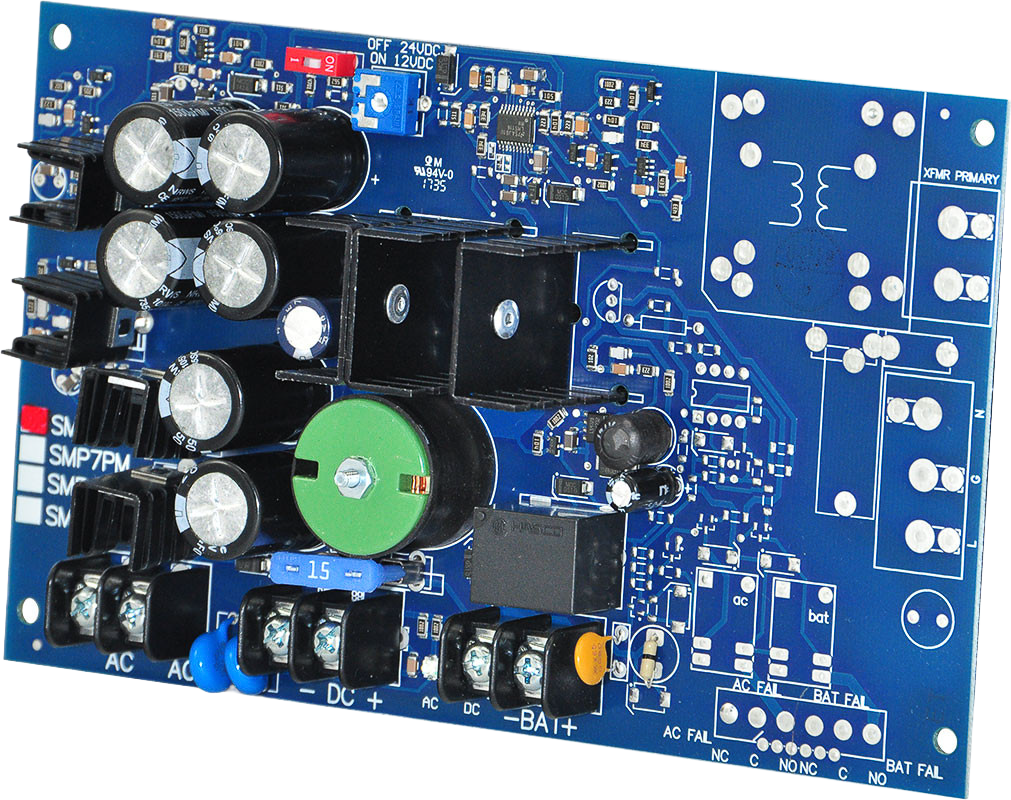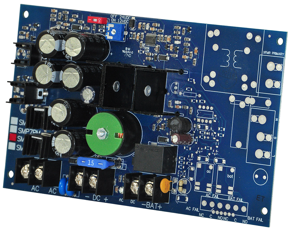 SKU SMP7 Categories Accesorios, Alimentación Tag A Fuente de poder / cargador tipo tablero, salida 12 V/24 V DC @ 6 A aprox., entrada 24-28 VAC. Ideal para sistemas medianos de control de acceso.