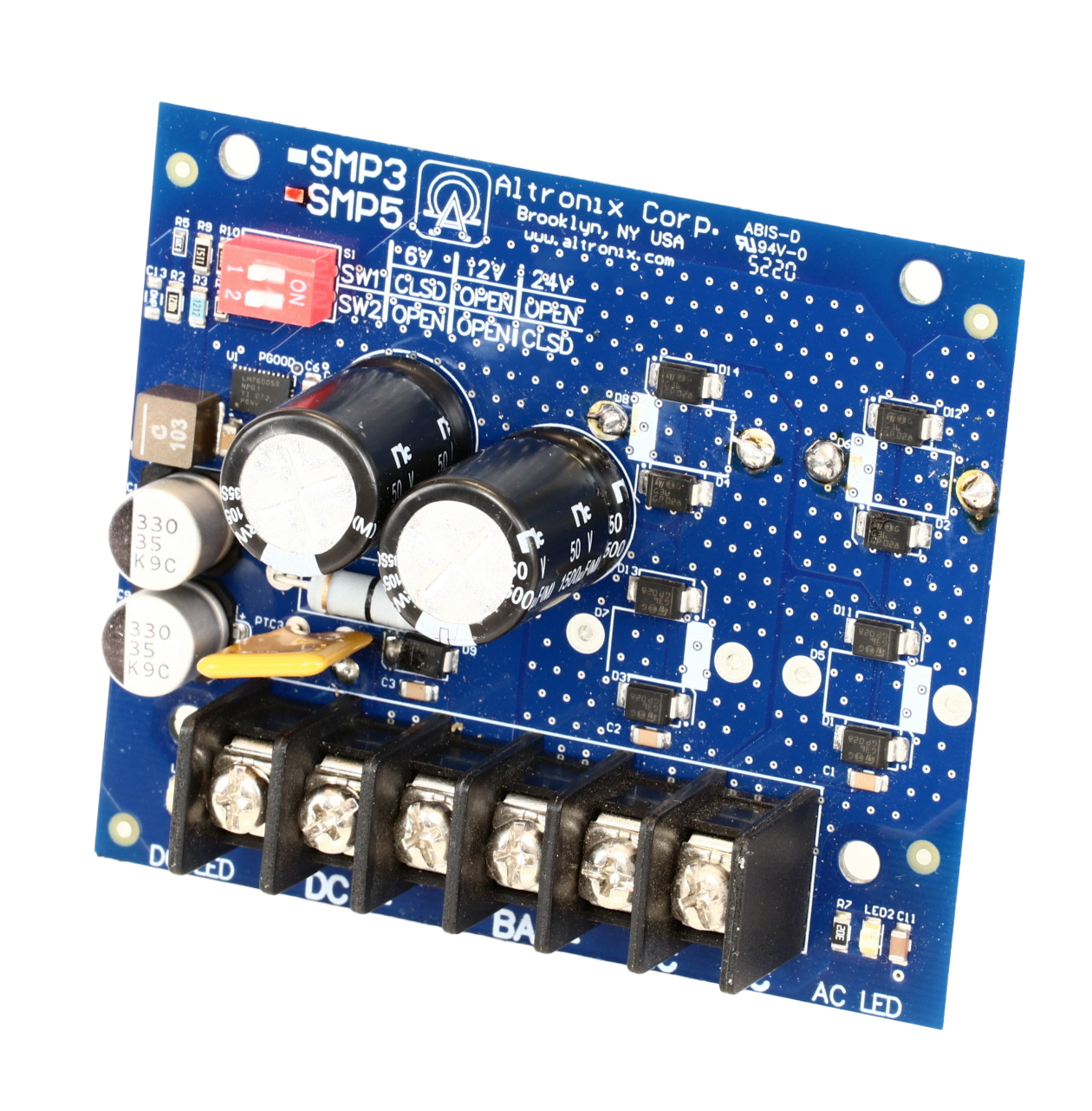 SKU SMP5 Categories Accesorios, Alimentación Tag A Fuente de poder tipo tablero, entrada 16-28 VAC, salida seleccionable 6 V/12 V/24 V DC, corriente máxima de 4 A continuos. Protección contra cortocircuito y sobretemperatura.