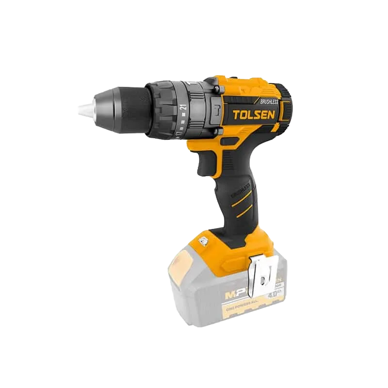 SKU 87255 Categories Ferreteria, Herramientas, Herramientas electricas Tag A Taladro con percutor, Tolsen, inalámbrico, Tolsen, sin batería ni cargador, 20V, torque máx. 58 Nm, mandril metálico 1/2”, 2 velocidades y 3 funciones (atornillado/perforación/impacto), 87255